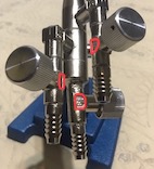 ・酸素のパイプは、内炎、外炎に関係なく、8mmのパイプ(青色)であり、 ガスのパイプ(アイボリー色またはオレンジ色)は10mmのパイプを使用します。 ・上の写真の赤で囲んだ部分(ツマミの横)に、8や10などの数字が書いているので、 そのあたりを見てください。